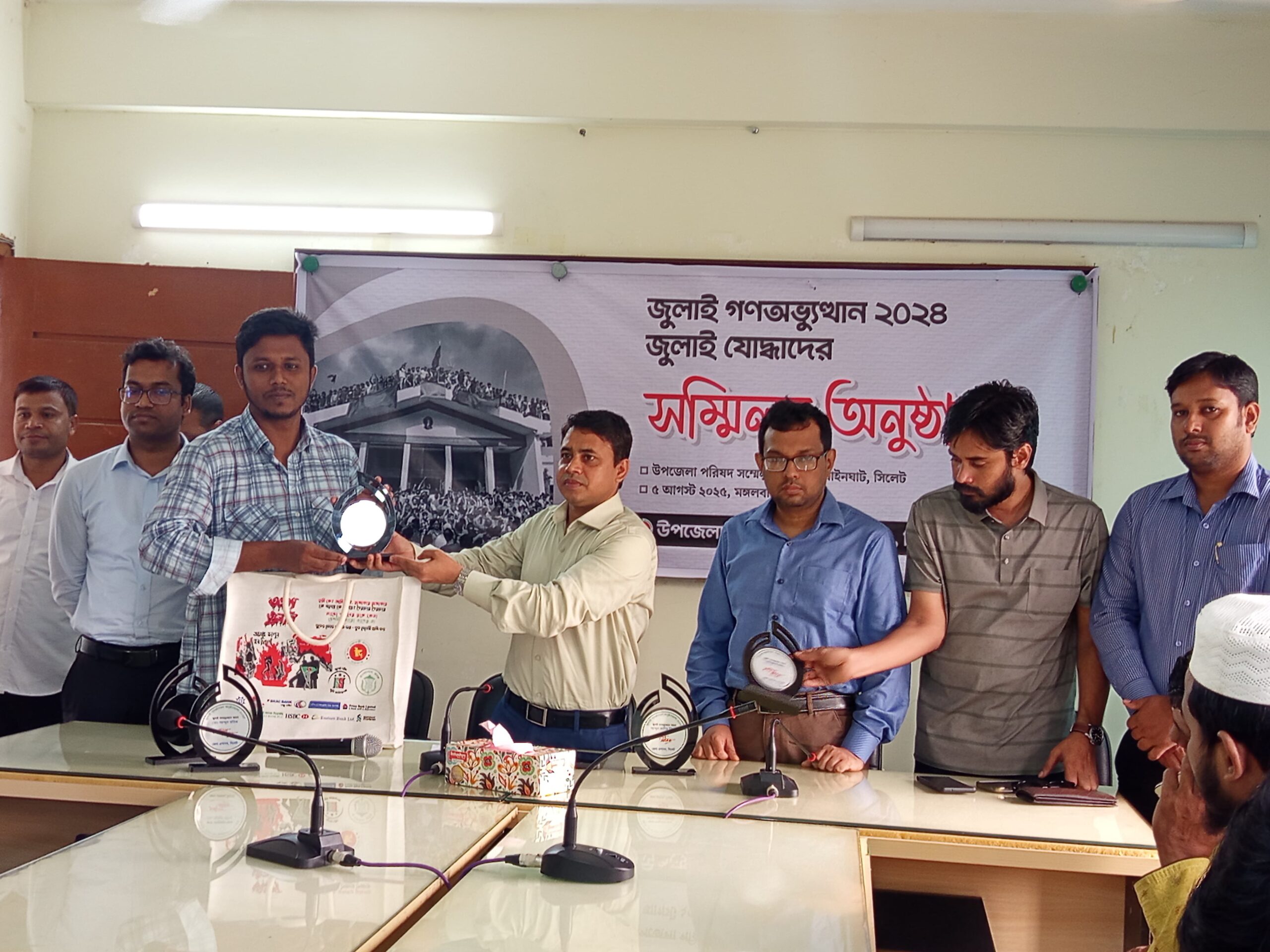 অনুষ্ঠানে জেলা প্রশাসনের পক্ষ থেকে যুদ্ধাহত জুলাই যোদ্ধাদের সম্মাননা ক্রেস্ট ও উপহার প্রদান কর হয়।