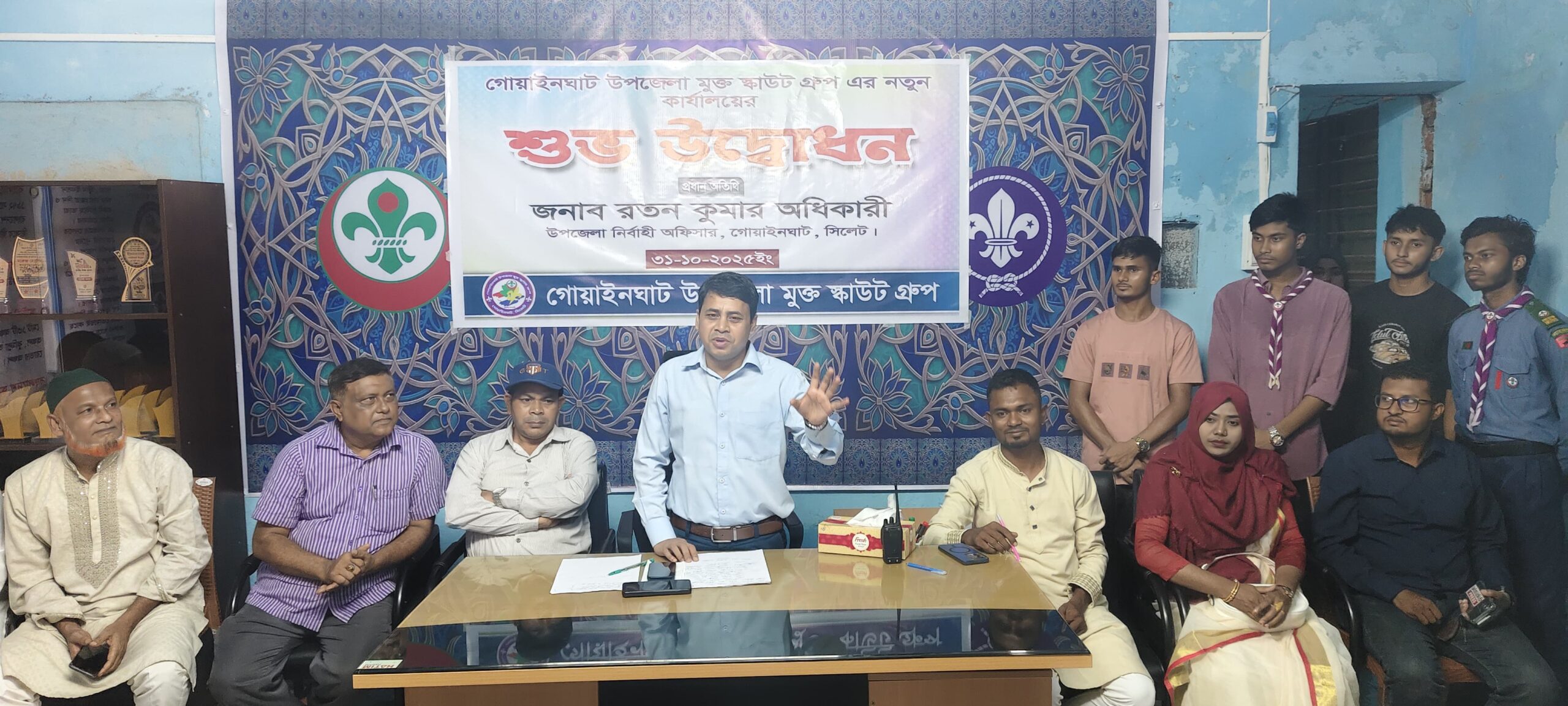 গোয়াইনঘাট উপজেলা স্কাউট গ্রুপের সভাপতি হিফজুর রহমান খাঁনের সভাপতিত্বে ও গোয়াইনঘাট উপজেলা মুক্ত স্কাউট গ্রুপ এর এস.আর.এম মারুফ আহমদের সঞ্চালনায় গোয়াইনঘাট মুক্ত স্কাউট গ্রুপ এর নতুন কার্যালয়ের উদ্বোধনী অনুষ্ঠানে বিশেষ অতিথি হিসেবে বক্তব্য রাখেন গোয়াইনঘাট উপজেলা স্কাউটস সম্পাদক মোঃ সারোয়ারদী, গোয়াইনঘাট প্রেসক্লাবের সাধারণ সম্পাদক মোঃ করিম মাহমুদ লিমন, গোয়াইনঘাট উপজেলা রিপোটার্স ক্লাবের সভাপতি সাদিকুর রহমান, ইউপি সদস্য শাহেদ আহমদ, তৈয়বুর রহমান, সিলেট জেলা স্কাউট এর যুগ্ন সম্পাদক রাজীব মিয়া, গোয়াইনঘাট উপজেলা স্কাউটের সহকারী কমিশনার আমিরুল ইসলাম আমিন, সমাজসেবক মাসুক আহমেদ, প্রকৃতি কন্যা জাফল মুক্ত স্কাউট গ্রুপের স্কাউট লিডার আলম মিয়া প্রমুখ।