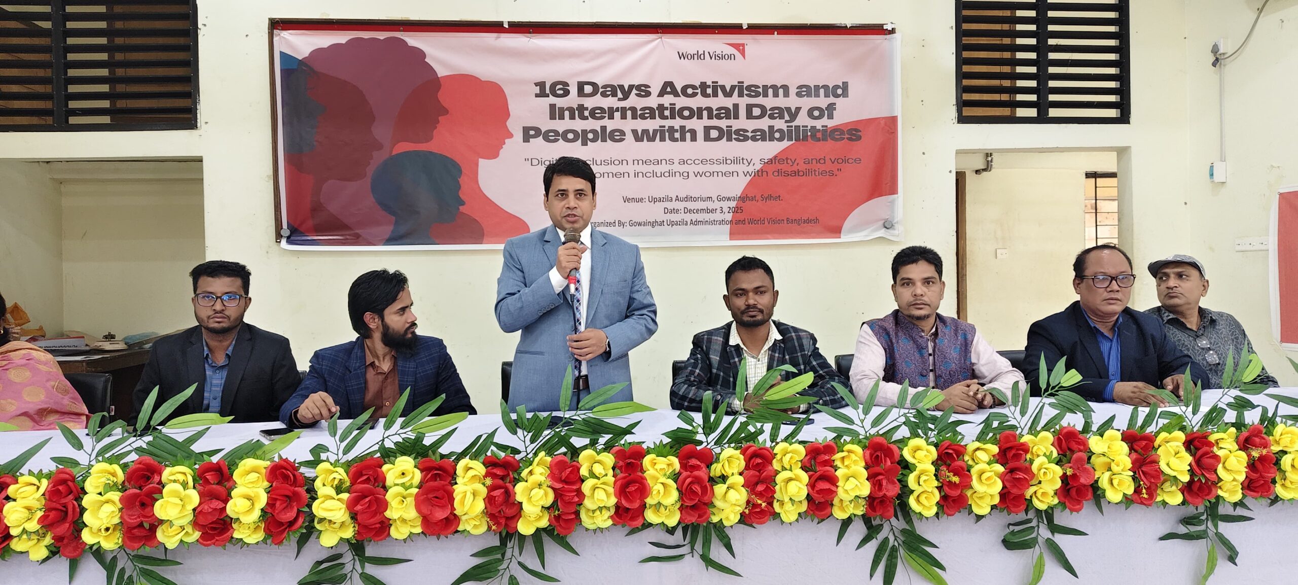 আন্তর্জাতিক প্রতিবন্ধী দিবস উপলক্ষ্যে সিলেটের গোয়াইনঘাটে ওয়ার্ল্ড ভিশন বাংলাদেশ গোয়াইনঘাট এপির আয়োজনে ১৬ দিনের অ্যাক্টিভিজম ক্যাম্পেইন অনুষ্ঠানে প্রতিবন্ধী শিশু ও তাদের অভিভাবকদের নিয়ে প্রতিবন্ধীদের প্রতি আমাদের আচরণ ও দৃষ্টিভঙ্গি বিষয়ে আলোচনা সভায় প্রধান অতিথির বক্তব্যে তিনি উপরোক্ত কথা বলেন।