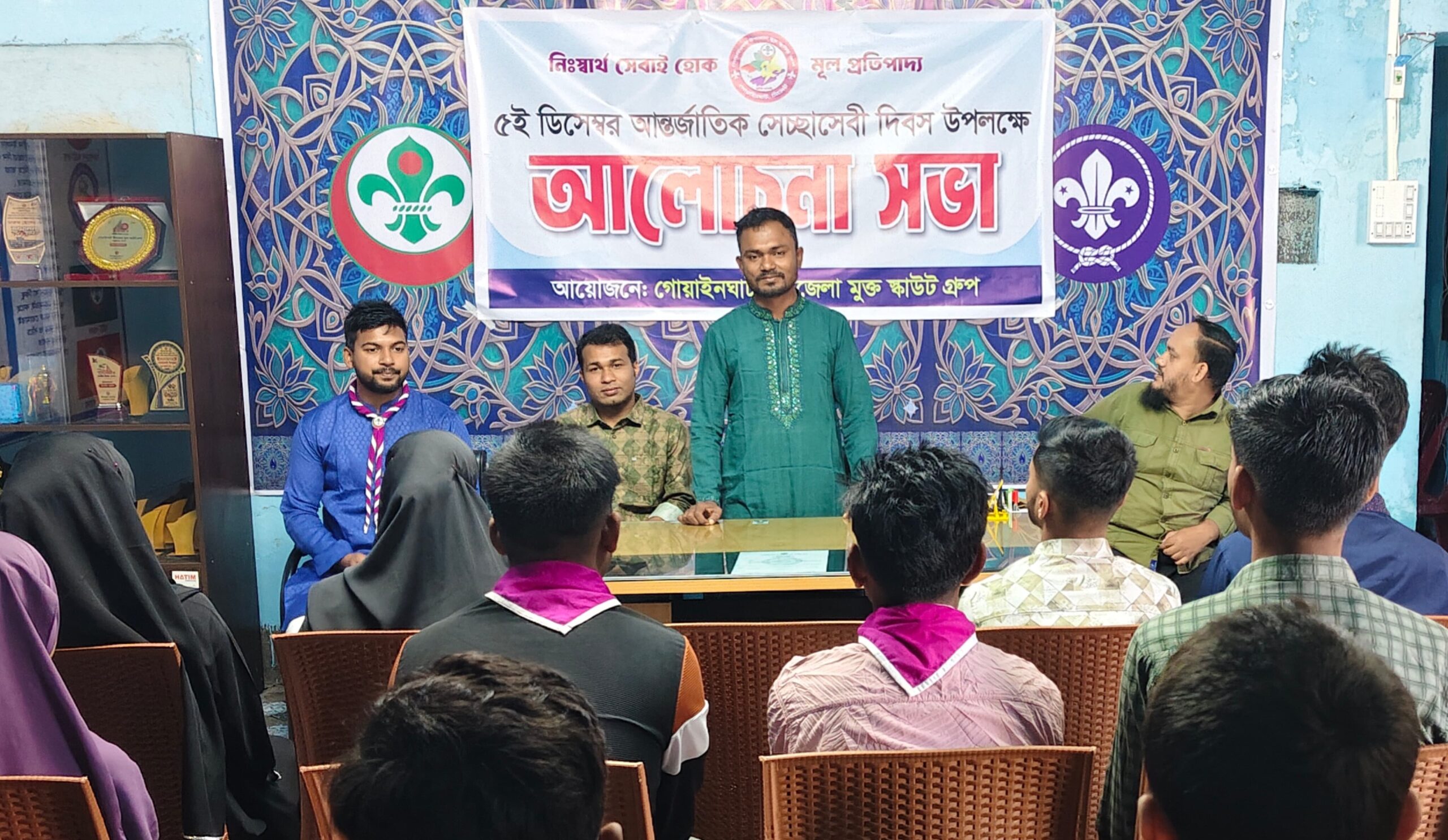গোয়াইনঘাট উপজেলা মুক্ত স্কাউট গ্রুপের এসআরএম মারুফ আহমেদের সভাপতিত্বে ও সঞ্চালনায় আন্তর্জাতিক স্বেচ্ছাসেবক দিবস উপলক্ষে আলোচনা সভায় প্রধান অতিথি হিসেবে বক্তব্য রাখেন গোয়াইনঘাট প্রেসক্লাবের সাধারণ সম্পাদক মোঃ করিম মাহমুদ লিমন।