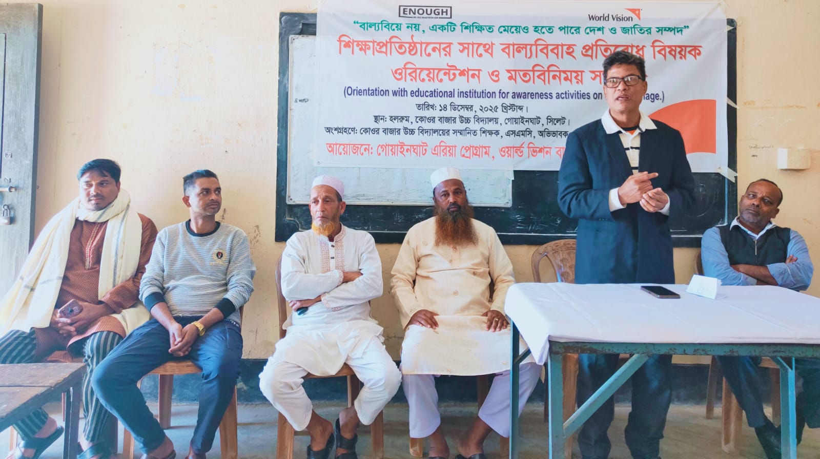 সিলেটের গোয়াইনঘাটে ওয়ার্ল্ড ভিশন কর্তৃক বাল্য বিবাহ প্রতিরোধ বিষয়ক মতবিনিময় সভা অনুষ্ঠিত হয়েছে। বৃহস্পতিবার দুপুরে উপজেলার পশ্চিম আলীরগাঁও ইউনিয়নের ‘কোওর বাজার উচ্চ বিদ্যালয়ে’র হলরুমে আয়োজিত মতবিনিময় সভায় প্রধান অতিথির বক্তব্য রাখেন ওয়ার্ল্ড ভিশন গোয়াইনঘাট উপজেলার কর্মকর্তা এনতনিও।